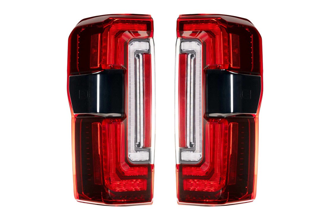 2023+ Super Duty: Your 2023+ Ford Super Duty may have a leveling kit, exhaust, and other mods, but is lacking the style updates--Morimoto now has you covered! Available in red and smoked, the XB LED tail lights substantially improve the looks while retaining the necessary BLIS module and its proper aim for safety.