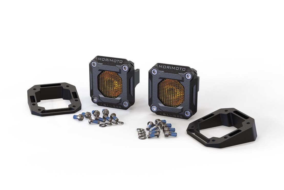 Bolt on Brighter: The Morimoto 1Banger Flush Mount system is the perfect way to recess a set of compact LED Pods into any flat surface. Whether you want to keep a clean profile on your steel bumper or line up LED pods across your roof rack, our flush mount kit makes it easy. Select a set of high performance 1Banger LED pods in your choice of beam pattern, pair that with the bezels to make installation a breeze, and power it properly with our switched wire harness.
